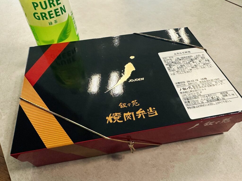 今日のランチは、ビジネスランチだったので、叙々苑の上カルビ焼肉弁当を用意してもらいました。