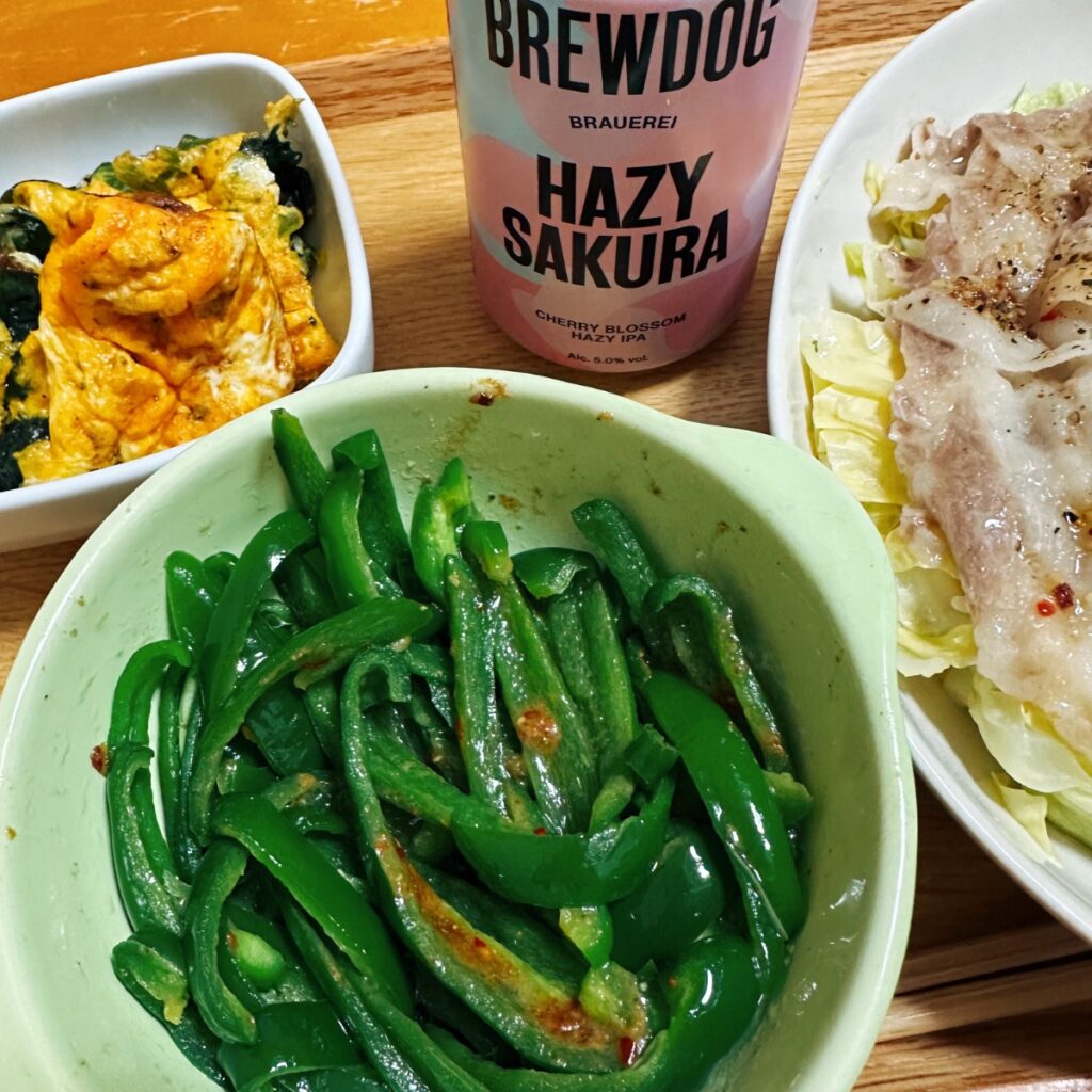 今夜は、ChatGPTに相談して、キャベツと豚肉のレンジ蒸し、ほうれん草の卵焼き、麻辣ピーマンを作りました。