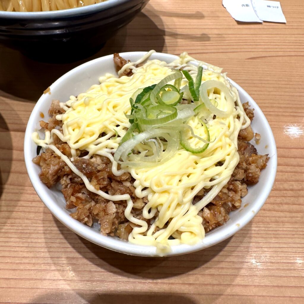 今日のお昼は、田町の玉で濃厚魚介特製つけ麺と肉飯を食べました。